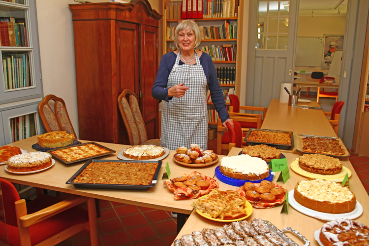 Nach kalten und regnerischen Tagen zeigte sich der Sonntagmorgen des 16.10. den Erwartungen des Fördervereins Haus des Gastes unverhofft geneigt und präsentierte sich als strahlender ›Goldener Oktober‹. Das erprobte Team, verstärkt von mehreren jüngeren und ideenreichen neuen Mitgliedern des Vorstands, war an allen Arbeitsstationen rechtzeitig einsatzbereit, als auch schon die ersten Besucher eine Stunde vor dem offiziellen Beginn erschienen.
