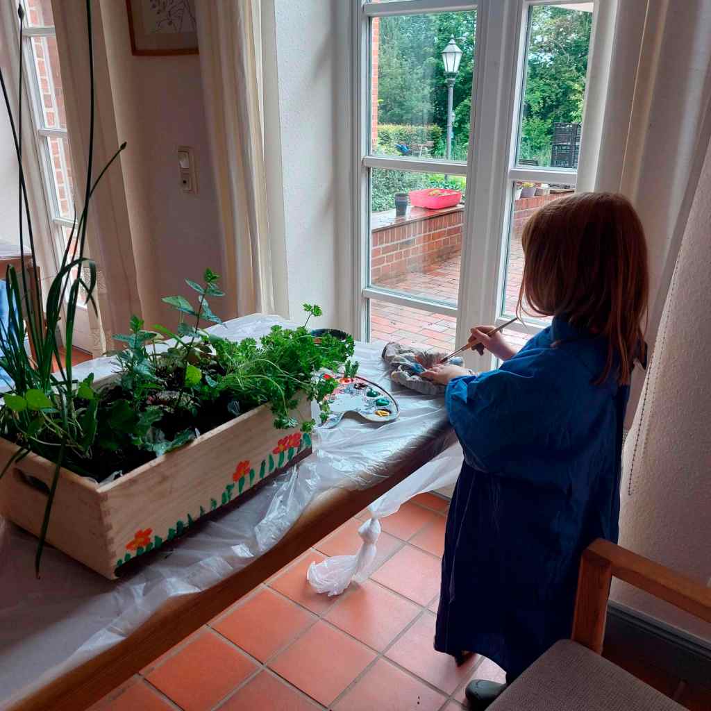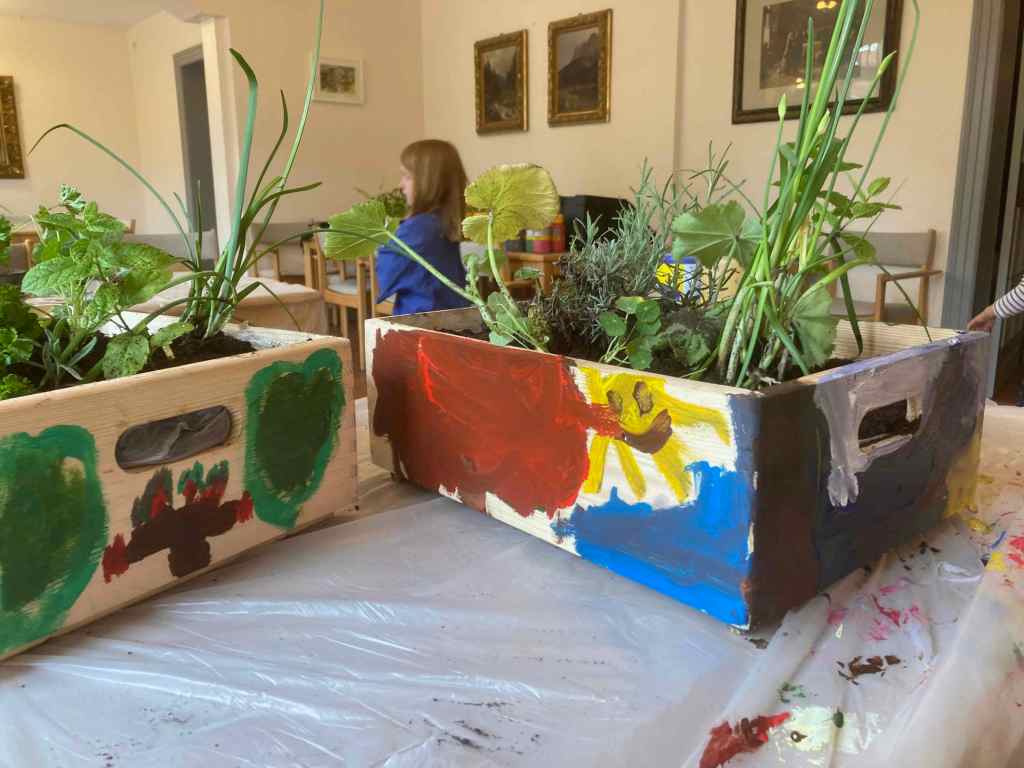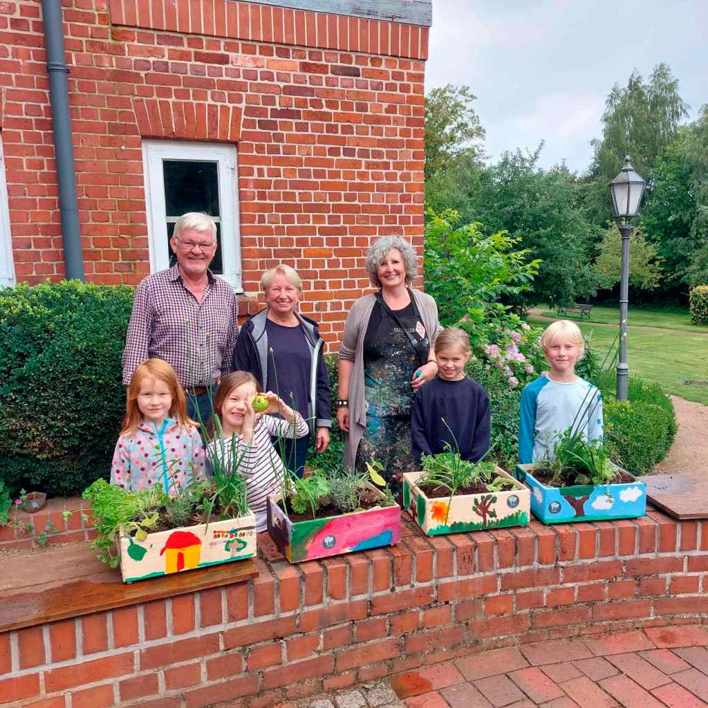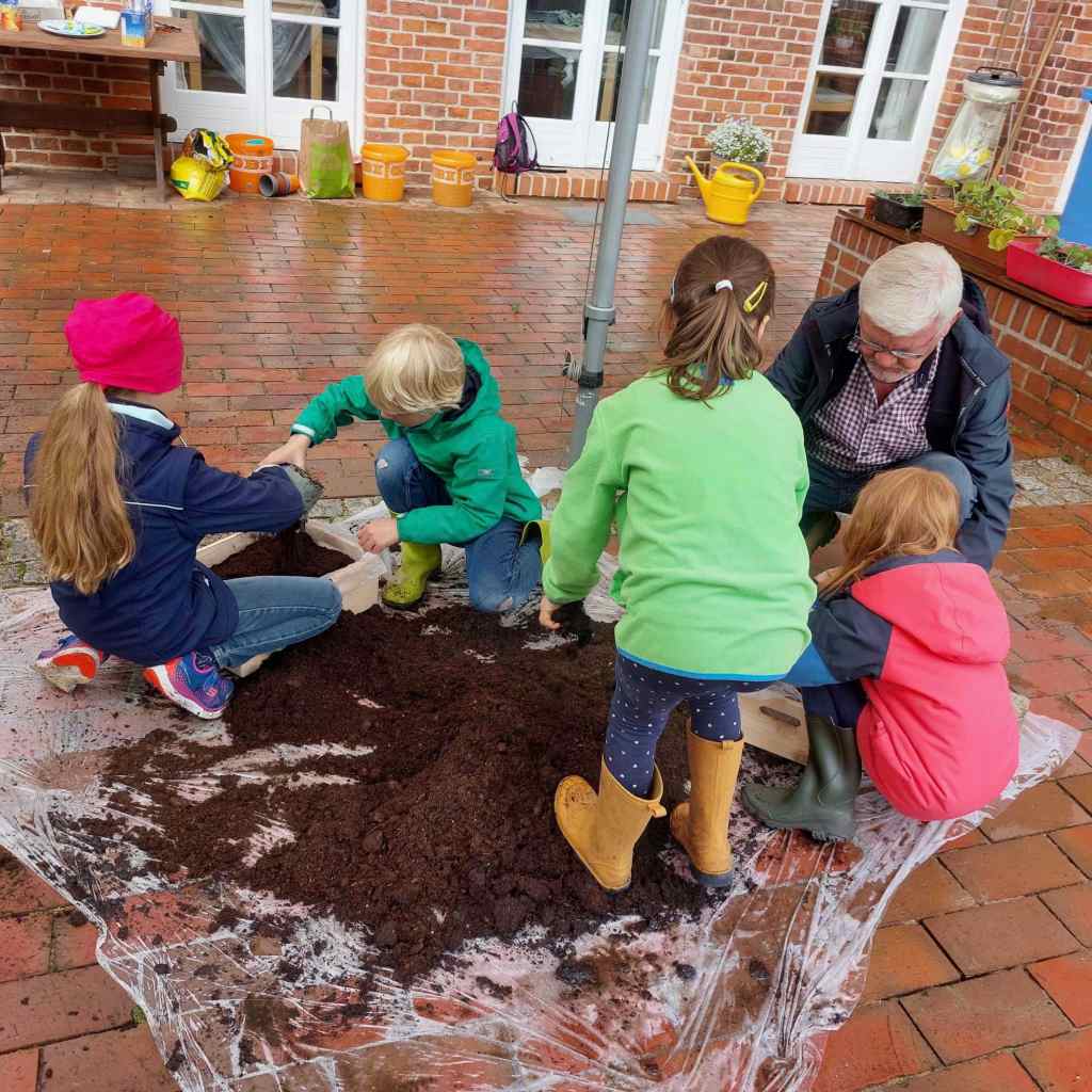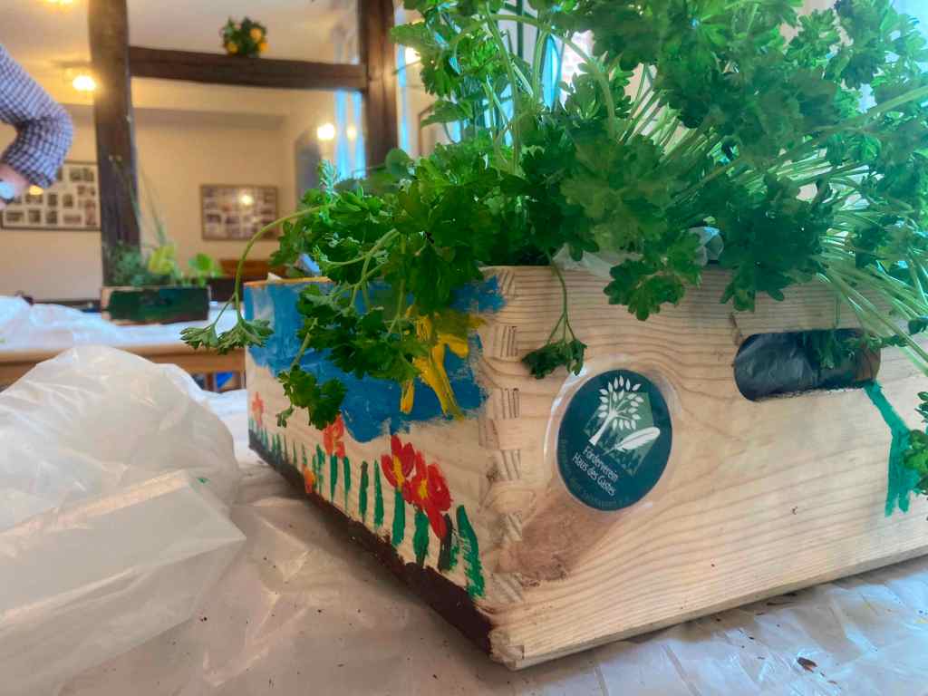 Aus einer Auswahl an vorgezogenen Pflanzen wie verschiedenen Kräutern, Kürbissen oder Kapuzinerkresse haben sich die Kinder ausgesucht, was sie pflanzen wollten. Die Pflanzbehälter konnten zusätzlich dekoriert und im Anschluss mit nach Hause genommen werden.