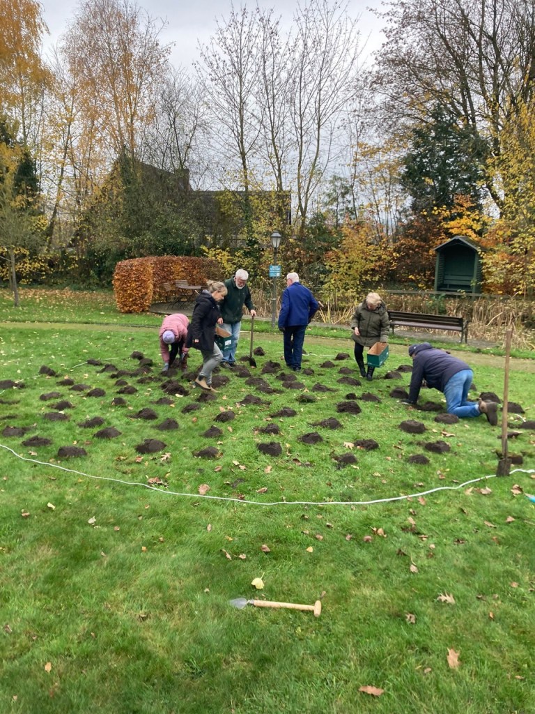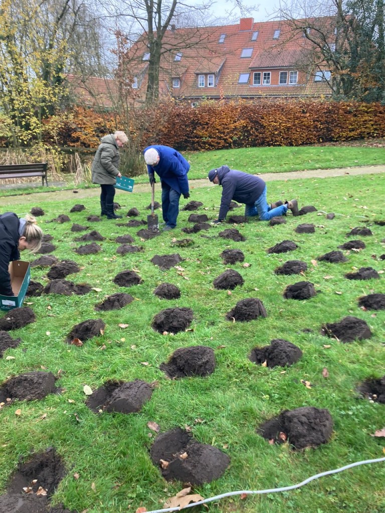 Damit es im Frühjahr schön bunt in unserem Garten blüht, hat der Vorstand am 16. November wieder fleißig Blumenzwiebeln gepflanzt. Bei ungemütlichem aber trockenem Herbstwetter wurden Zwiebeln von Iris, Krokussen, Osterglocken und Tulpen in den Boden gesetzt.