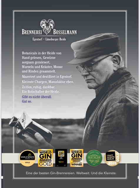 In Deutschlands vermutlich kleinster privaten Gin-Destillation im Herzen der Lüneburger Heide stellt er die edlen Tropfen im London-Dry-Gin-Verfahren her. Es inspirieren ihn die Moose und Wurzeln, Schlehen, Hagebutten, Nüsse, Brombeeren und Tannenspitzen am Wegesrand. Der Schutz der Natur und der Artenvielfalt liegen ihm am Herzen, keiner seiner Gins gleicht dem anderen, die Geschmäcker sind frisch, fruchtig bis derbe und würzig.
