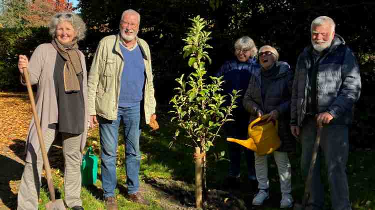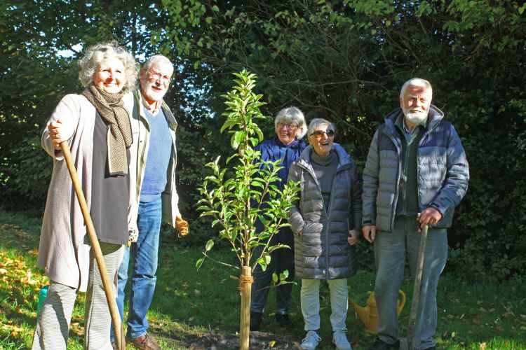 Im Rahmen der Baumpflanz-Challenge* wurde der Förderverein Haus des Gastes vom Salzhäuser Gemeinderat nominiert. Dieser Herausforderung haben sich heute mehrere Vorstandsmitglieder gestellt und einen jungen, kräftigen Apfelbaum rechts der Boule-Bahn gepflanzt.
