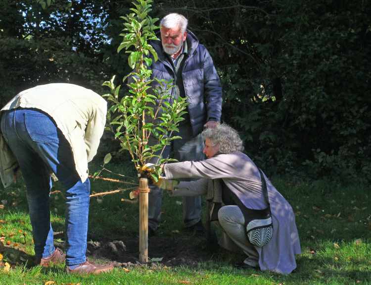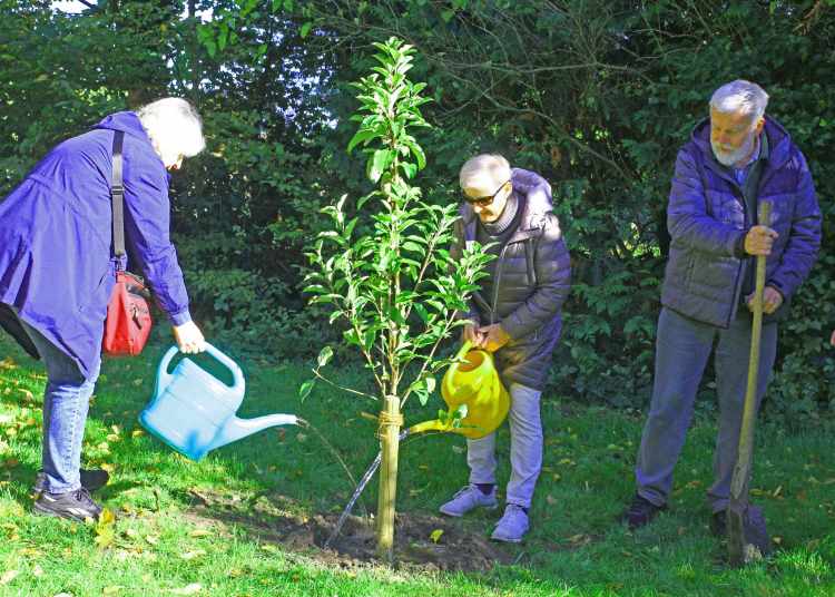 »Ja, lieber Salzhäuser Gemeinderat, das wird nichts mit der Einladung zum Essen, denn wir haben heute einen Baum gepflanzt: Der Förderverein Haus des Gastes hat einen neuen Apfelbaum (Elstar) gesetzt, der laut Auskunft der Gärtnerei unseres Vertrauens (Pröhl) auch schnell Früchte tragen wird.