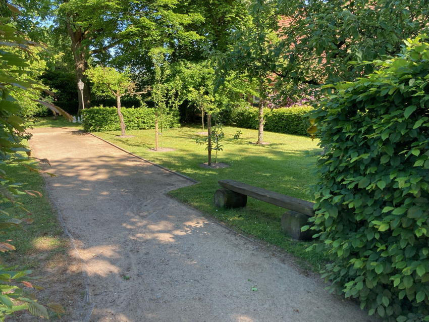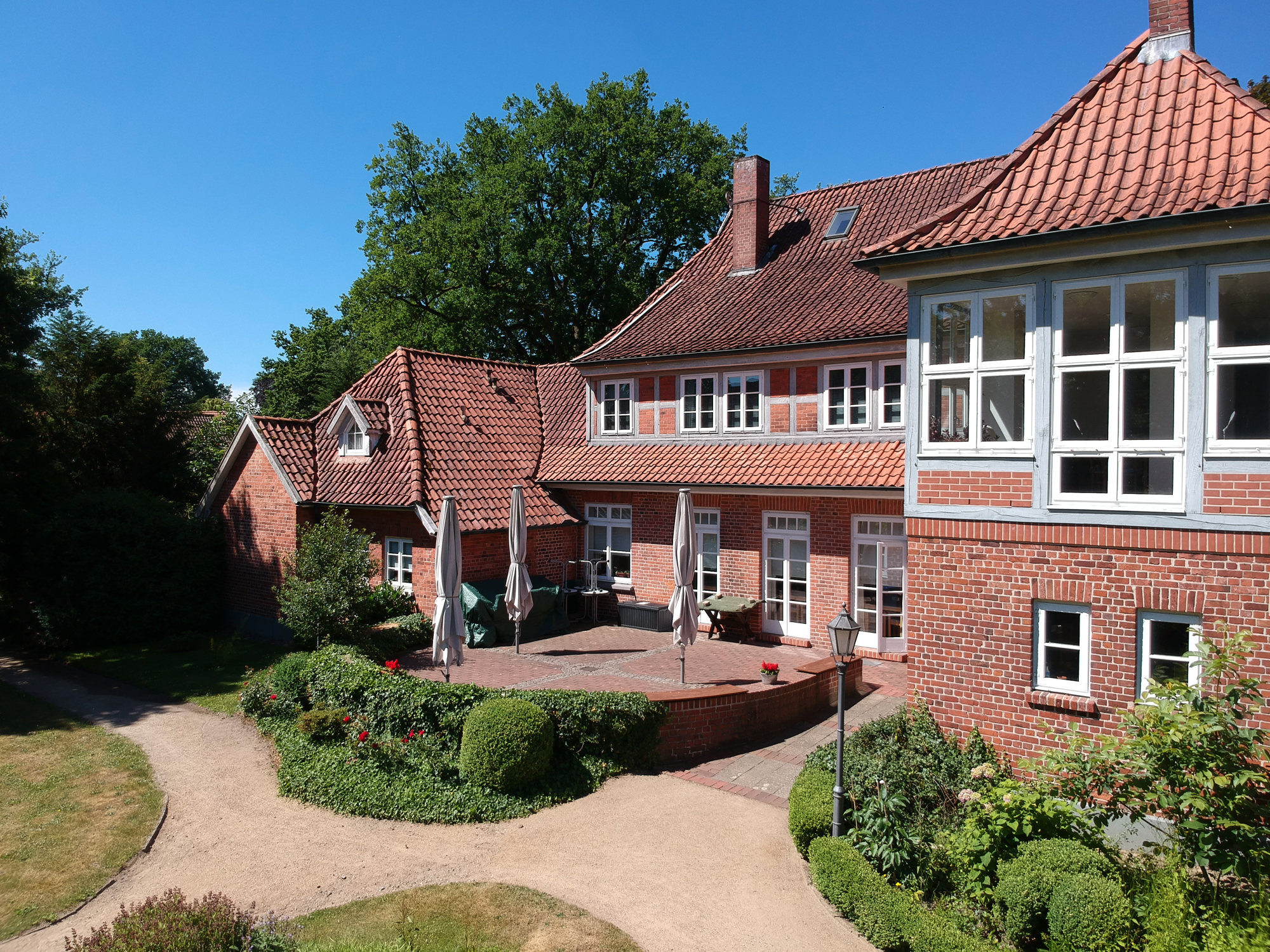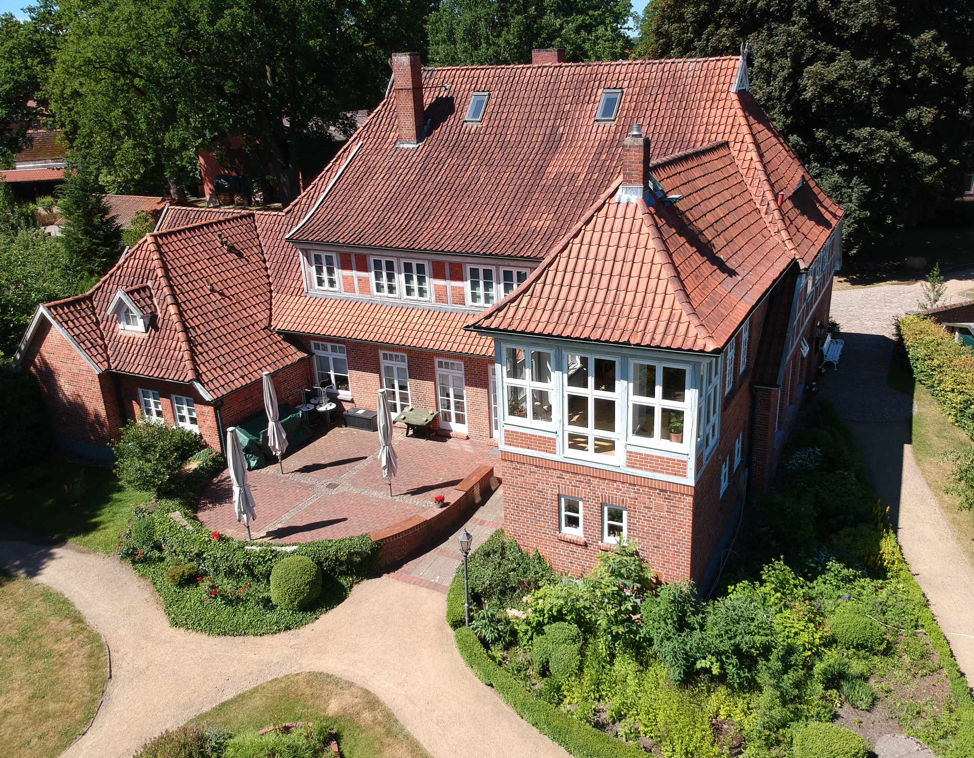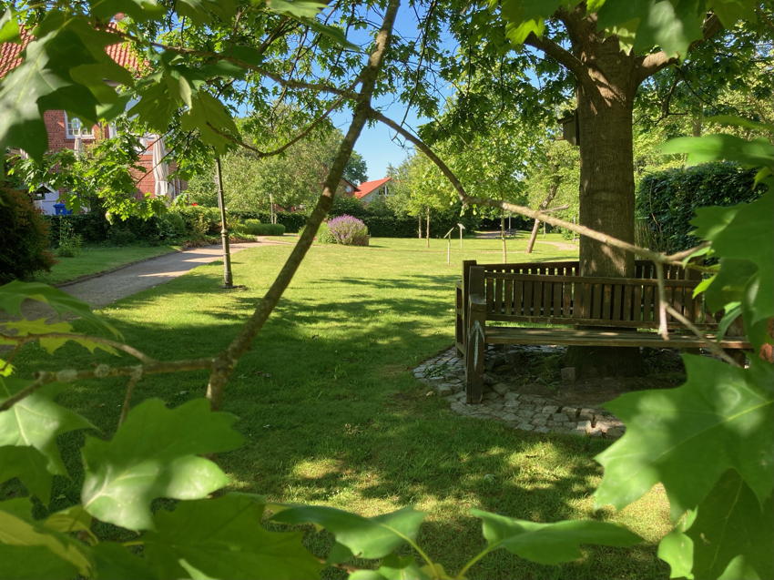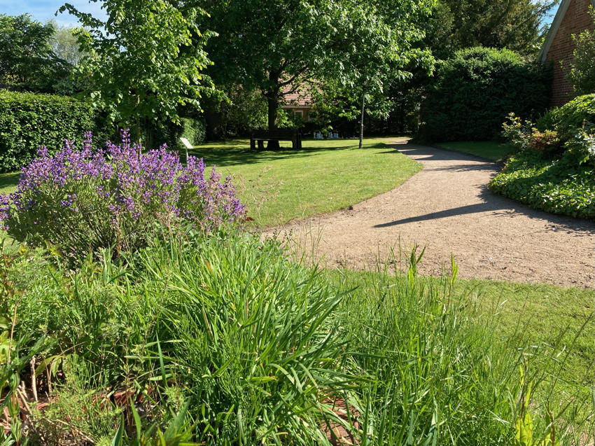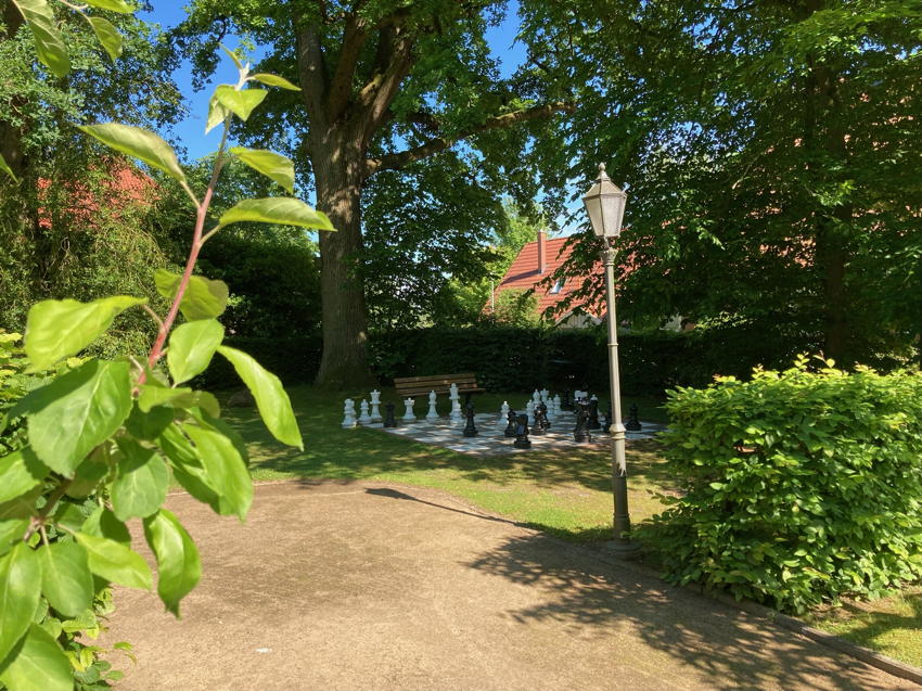 Auch der malerisch gestaltete Garten lädt zum Verweilen oder zu vielfältigen Aktivitäten ein: Sei es die Sitzecke am Teich oder die große Terrasse am Haus. Hier kann man die Natur genießen. Ein Garten-Schachspiel und eine Boule-Bahn laden zu geistiger und körperlicher Aktivität ein.