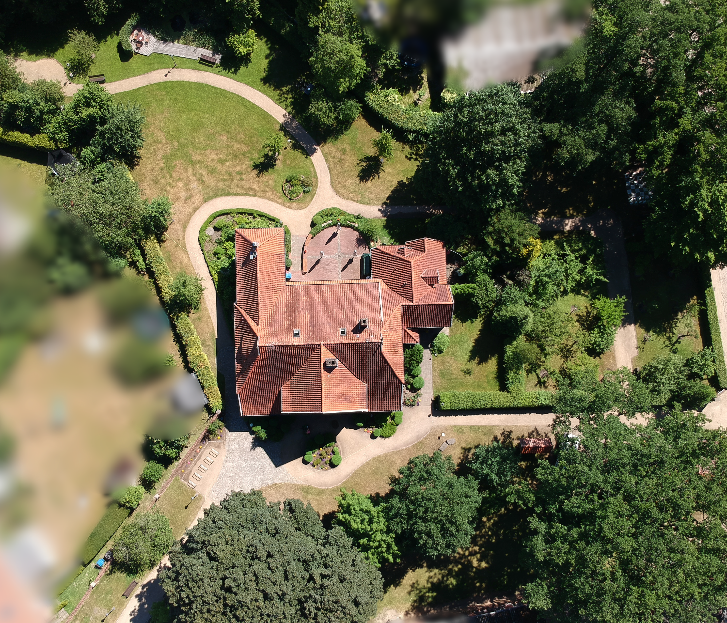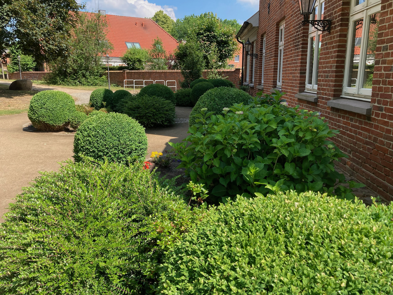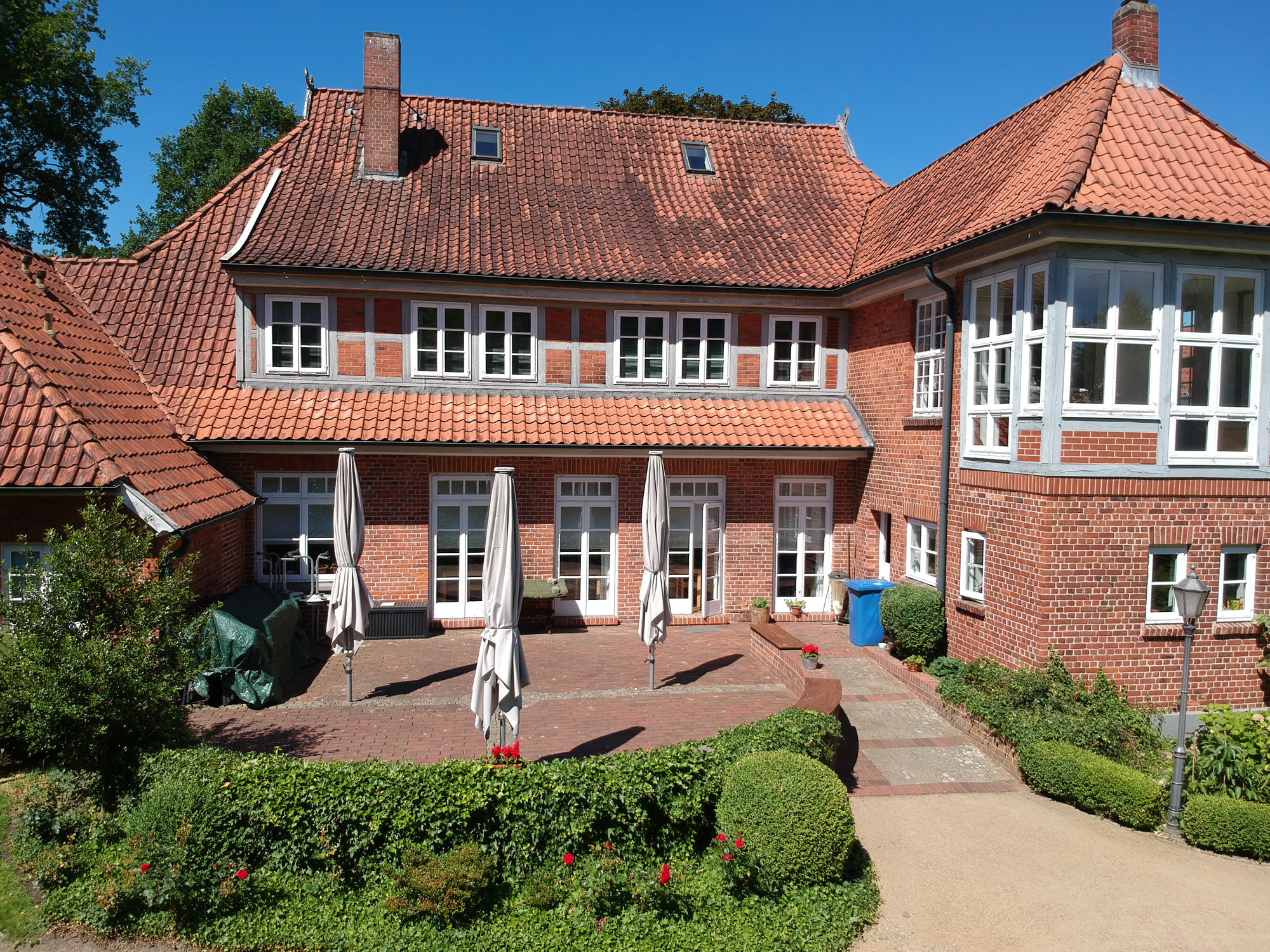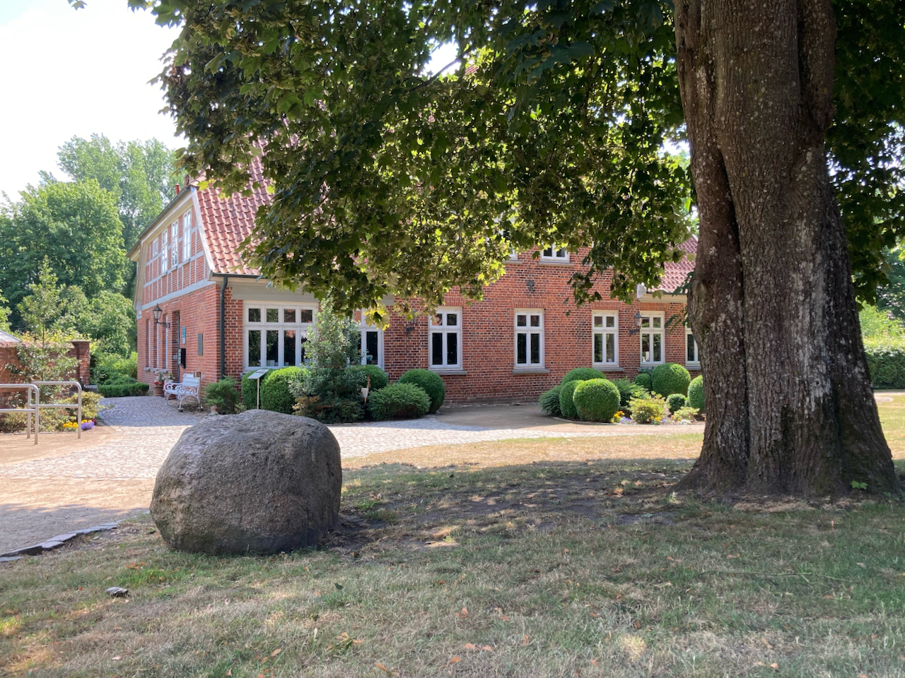 Auch der malerisch gestaltete Garten lädt zum Verweilen oder zu vielfältigen Aktivitäten ein: Sei es die Sitzecke am Teich oder die große Terrasse am Haus. Hier kann man die Natur genießen. Ein Garten-Schachspiel und eine Boule-Bahn laden zu geistiger und körperlicher Aktivität ein.